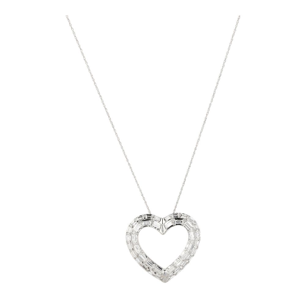 1.00 Ct 10K White Gold Lab Grown Diamond Baguette Heart Pendant Necklace