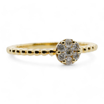 10K Gold Round Diamond Cluster With Beaded Shank Cocktail Ring