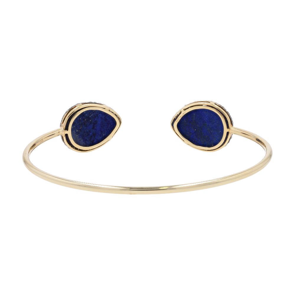 14K Gold Faceted Top Pear Shape Lapis With Diamond Claw Halo Cuff Bracelet