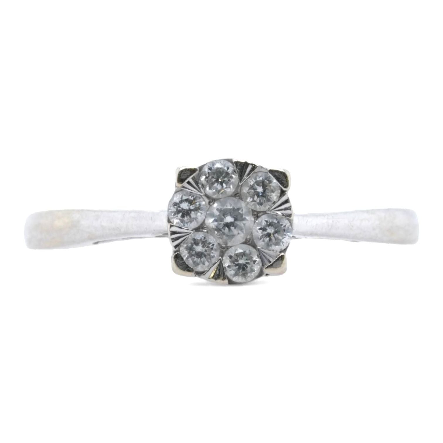 14K White Gold Round Diamond Cluster Engagement Ring