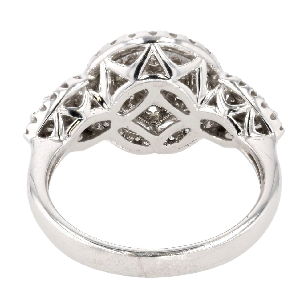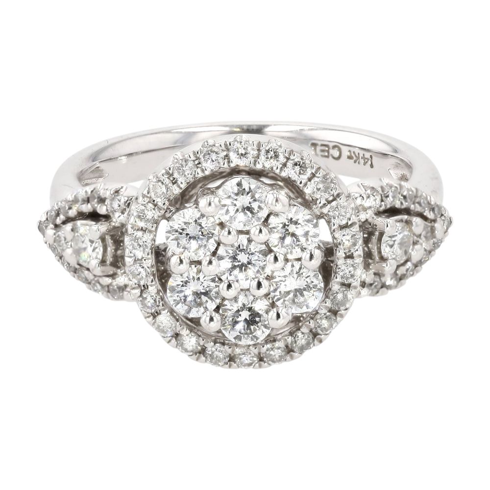 14K White Gold Round Diamond Clusters And Halos Ring