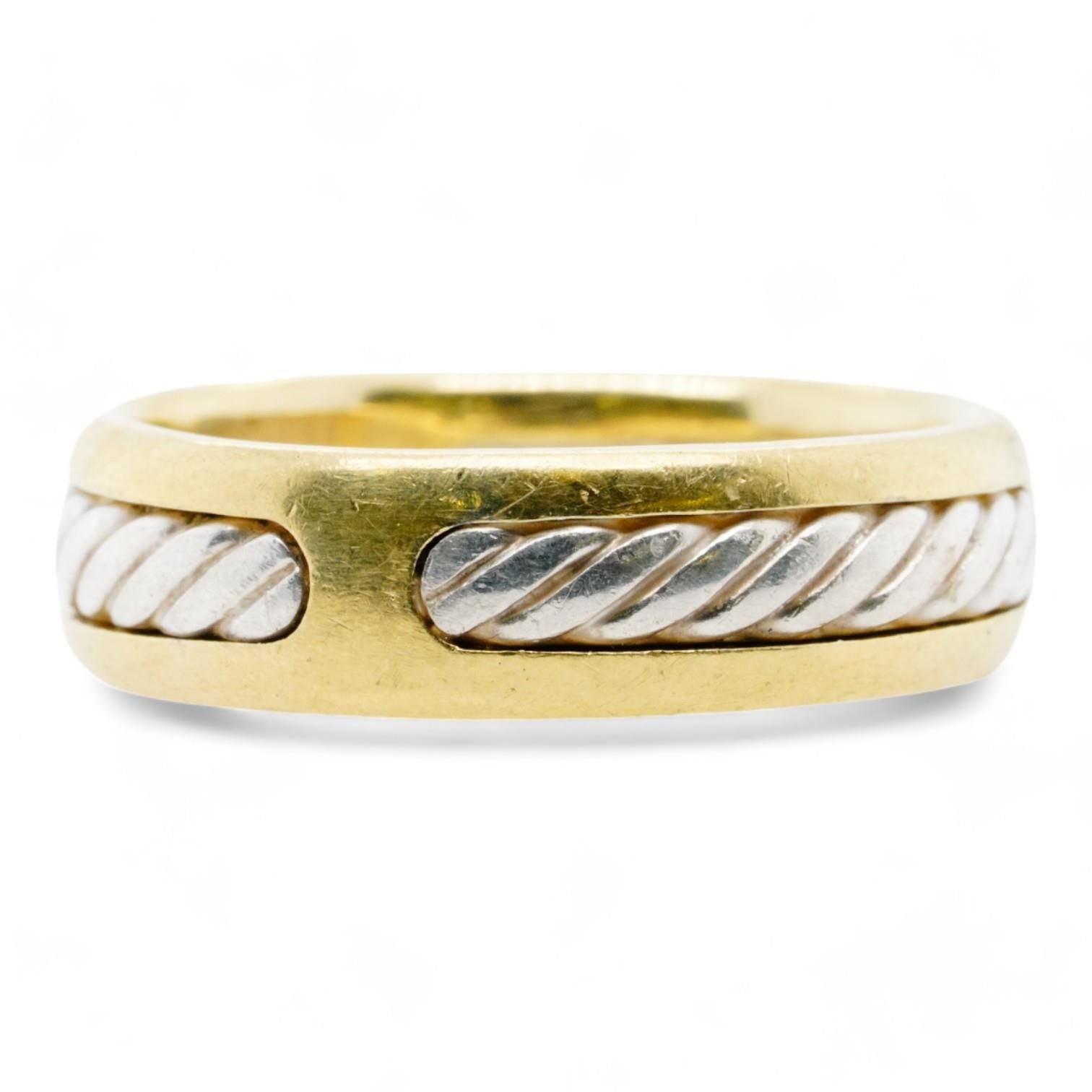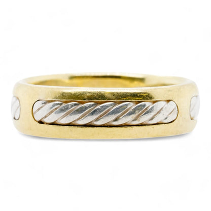 18K Gold Band With Sterling Silver Cable Inlay