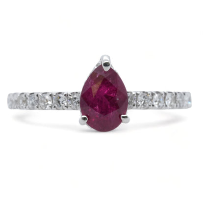 18K White Gold Pear Shaped Ruby With Diamond Accents Ring