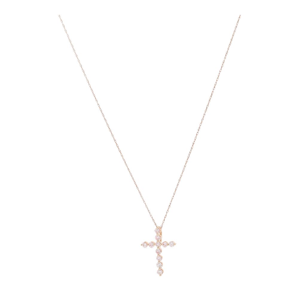 .60 Ct 14K Rose Gold Pink Lab Grown Diamond Cross Pendant Necklace