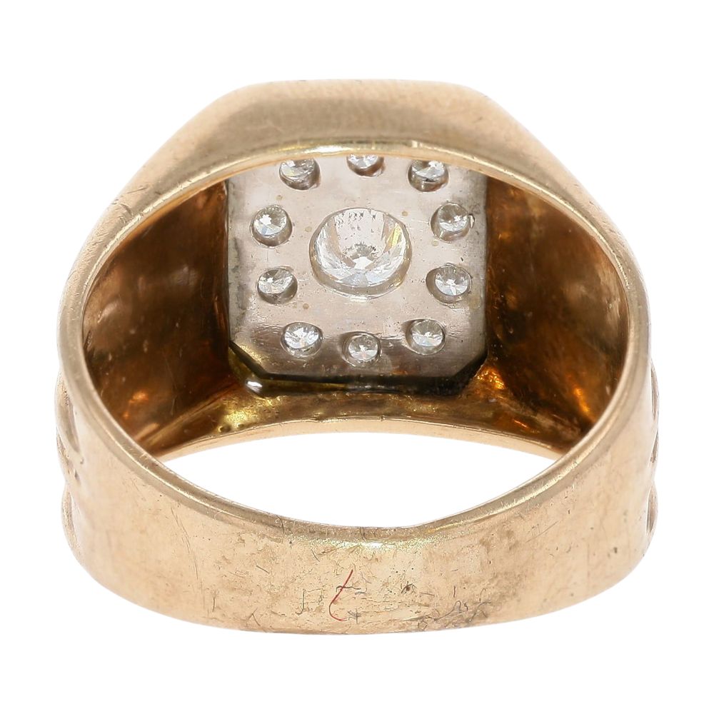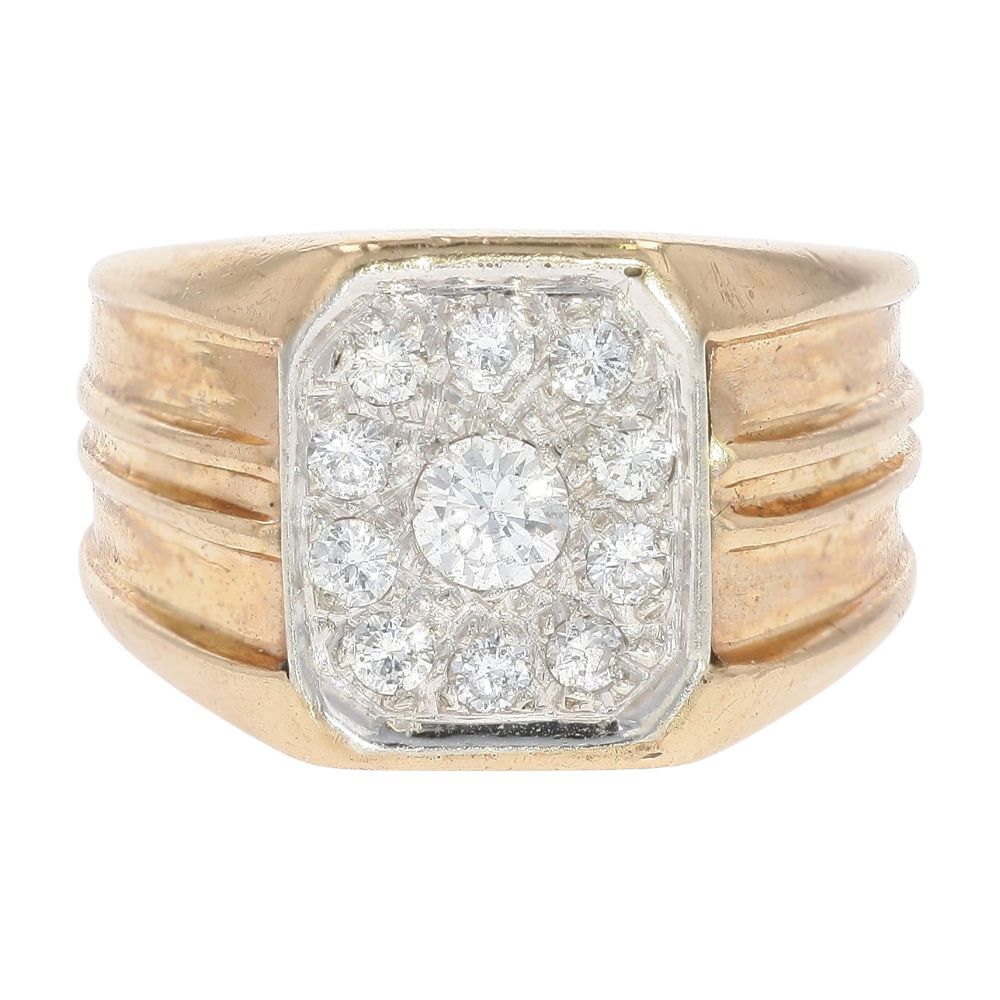 .75 Ct 14K Gold Square Top With Round Diamond Cluster Cocktail Ring