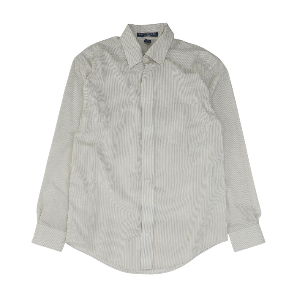 Beige Striped Long Sleeve Button Down