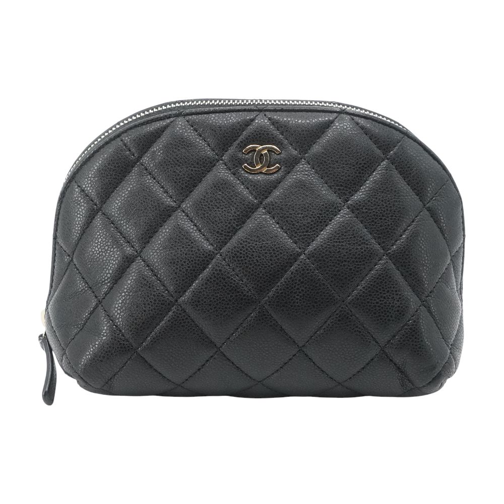Black Classic Quilted Caviar Leather Cosmetic Pouch