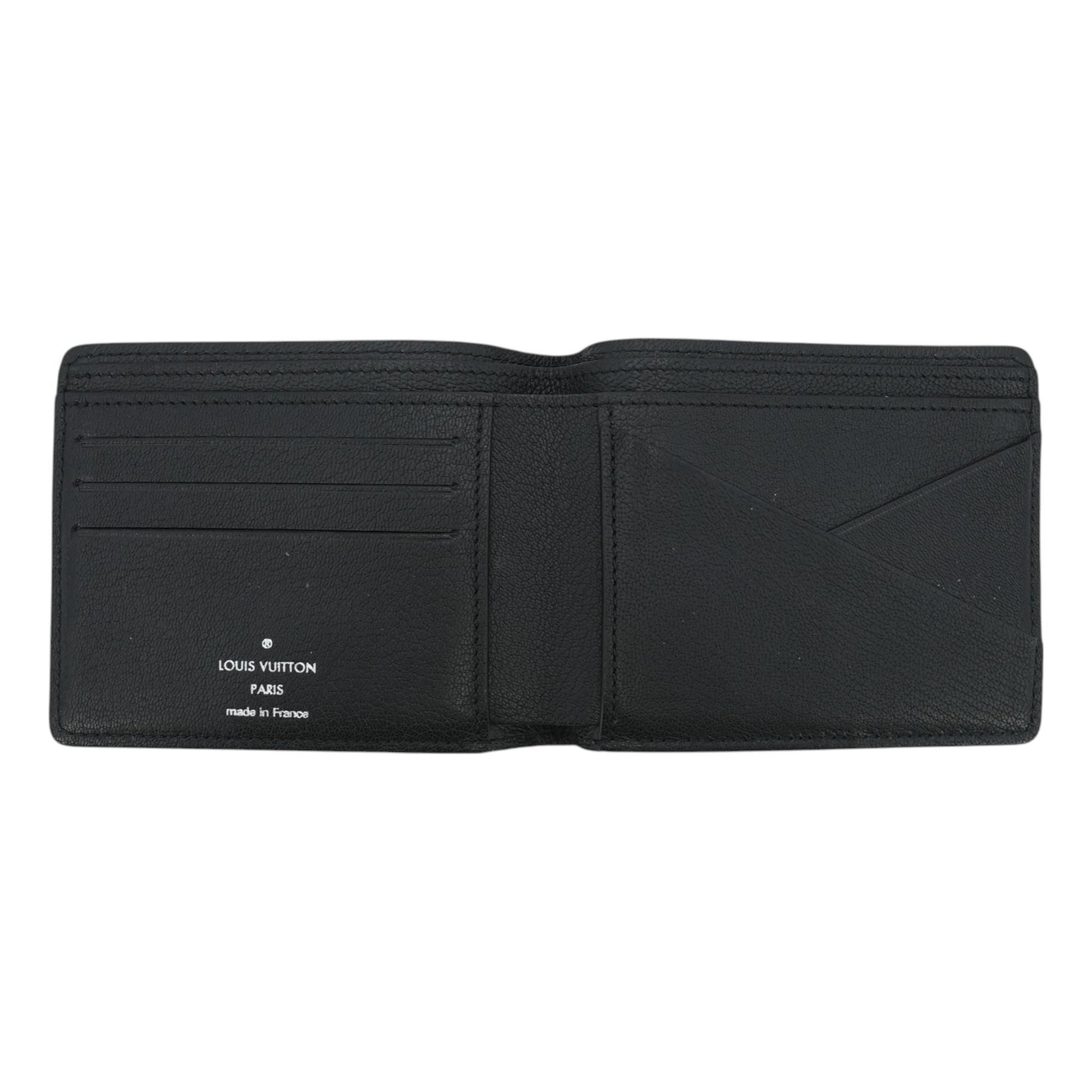 The Louis Vuitton Black Multiple Wallet in Ostrich Leather exudes luxury with its sleek, textured exterior, showcasing the distinctive pattern of the rare ostrich leather. This compact wallet is designed for ultimate organization, featuring multiple card slots and a bill compartment. While the exterior remains in excellent condition, it does show light internal wear, indicative of careful use. Its unique blend of sophistication and functionality makes it a timeless accessory for the discerning individual.
