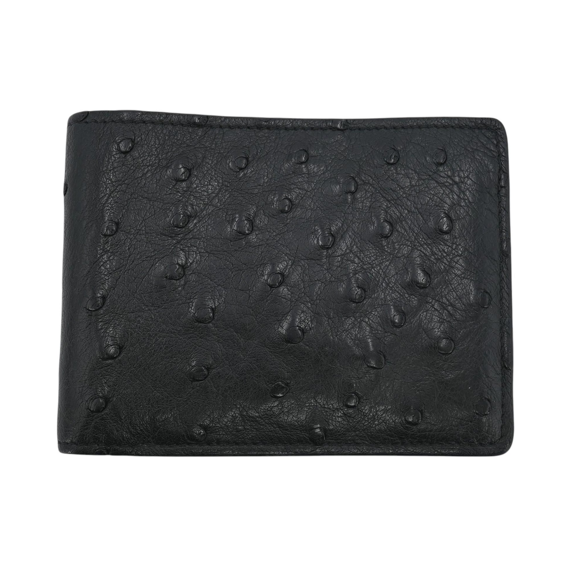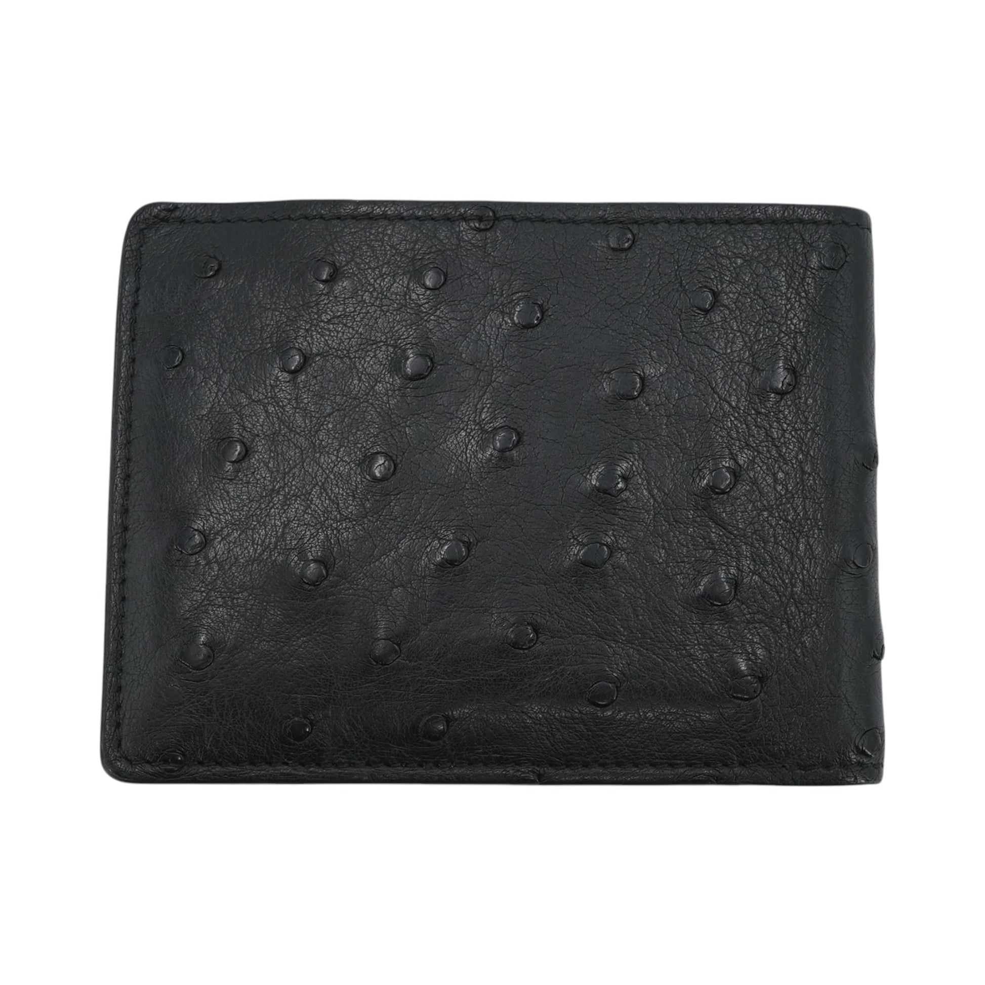 Black Multiple Wallet in Ostrich Leather