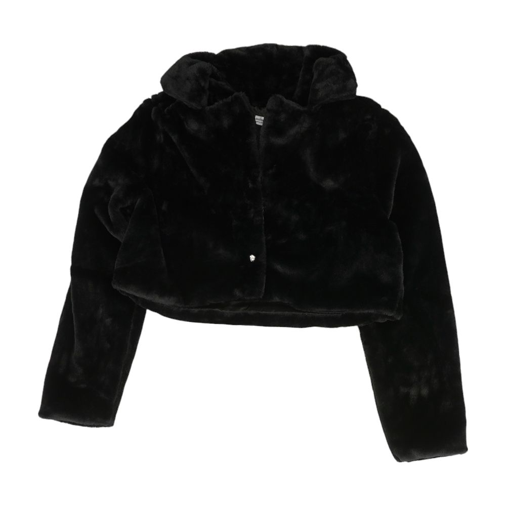 Black Solid Fur Coat