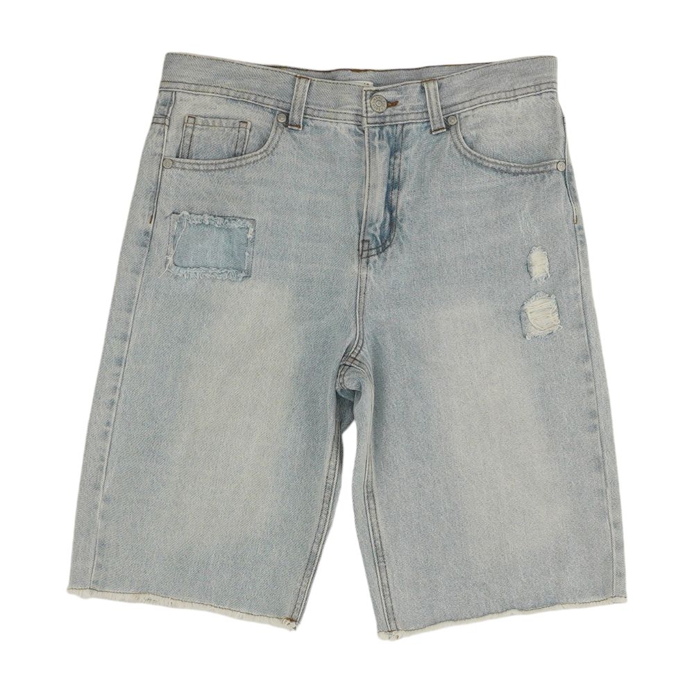 Blue Solid Denim Shorts