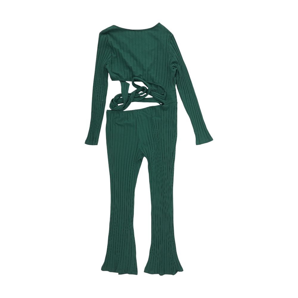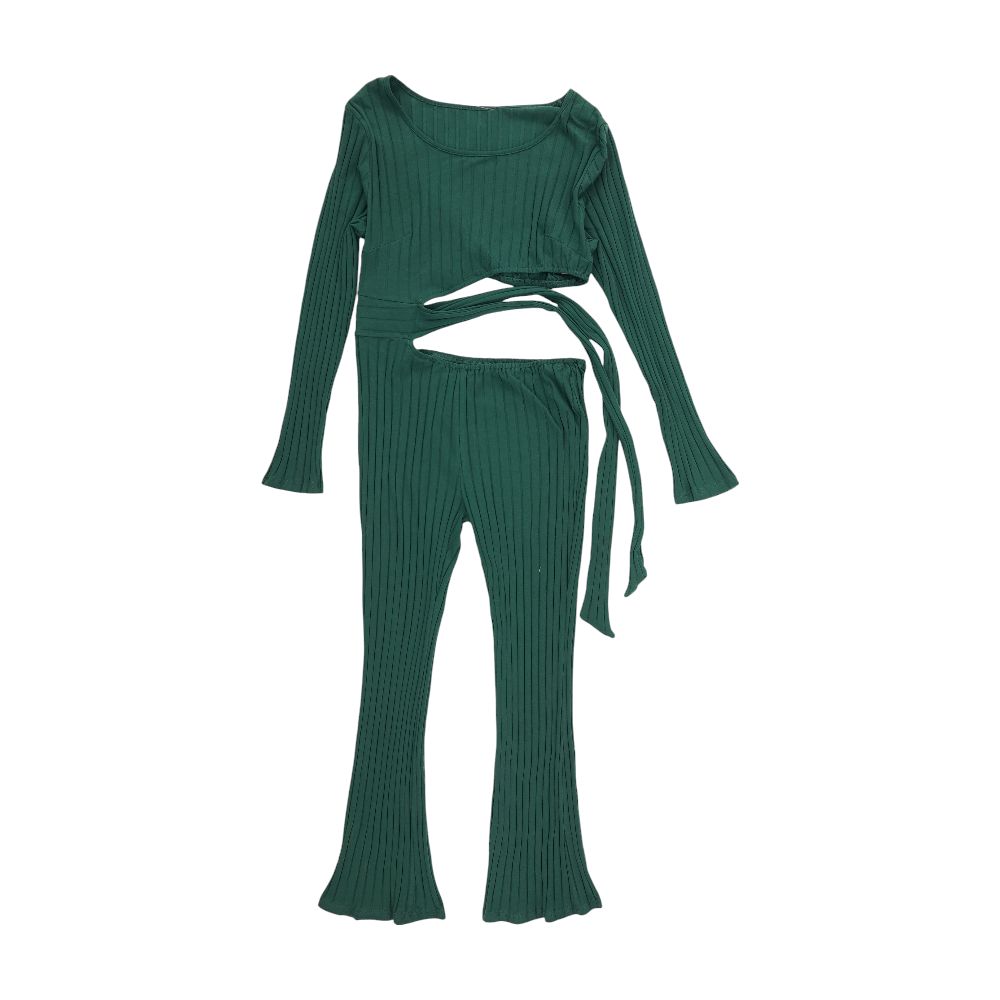 Green Solid Cropped T-Shirt and Pant Set