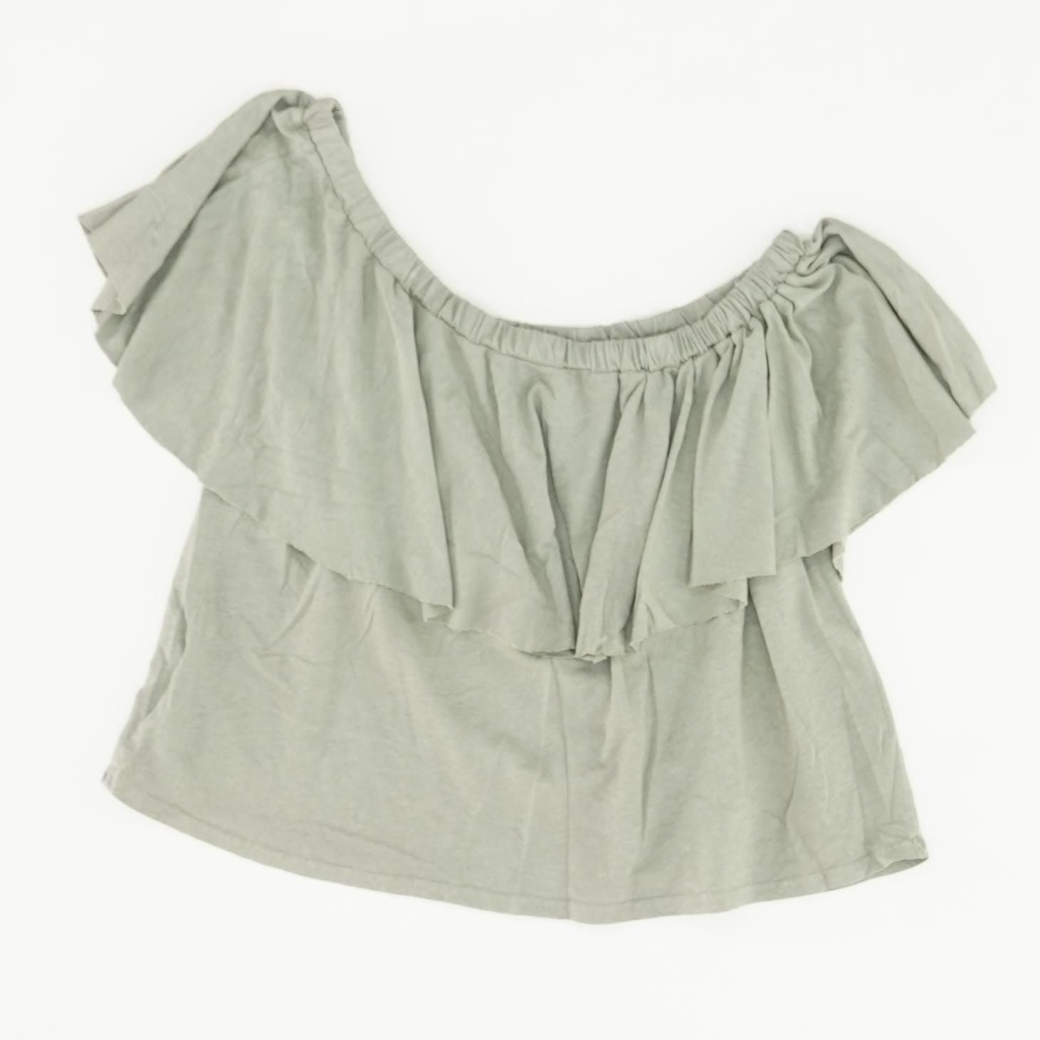 Green Solid Short Sleeve Blouse