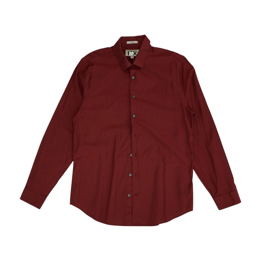 Maroon Solid Long Sleeve Button Down