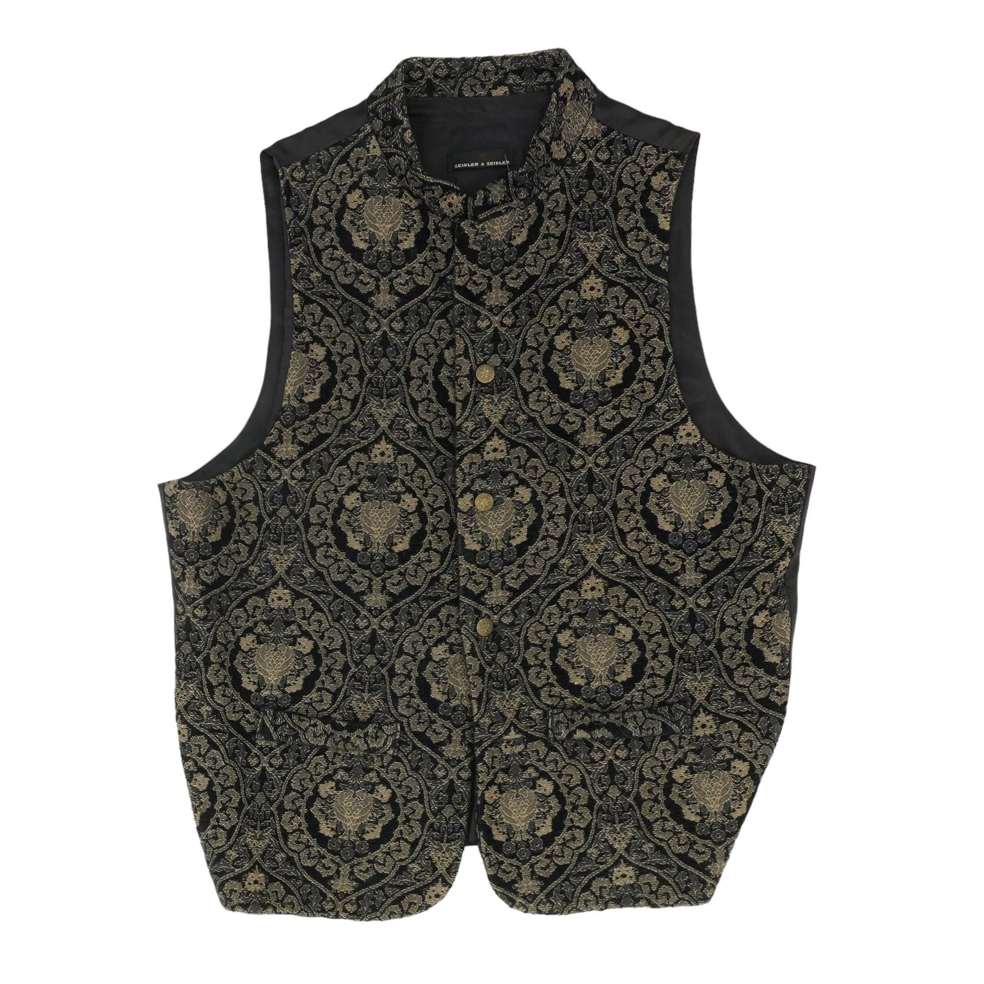 Vintage Black Silk Blend Tapestry Printed Suit Vest