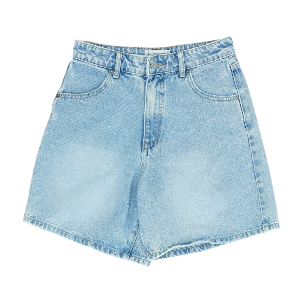 Blue Solid Denim Shorts